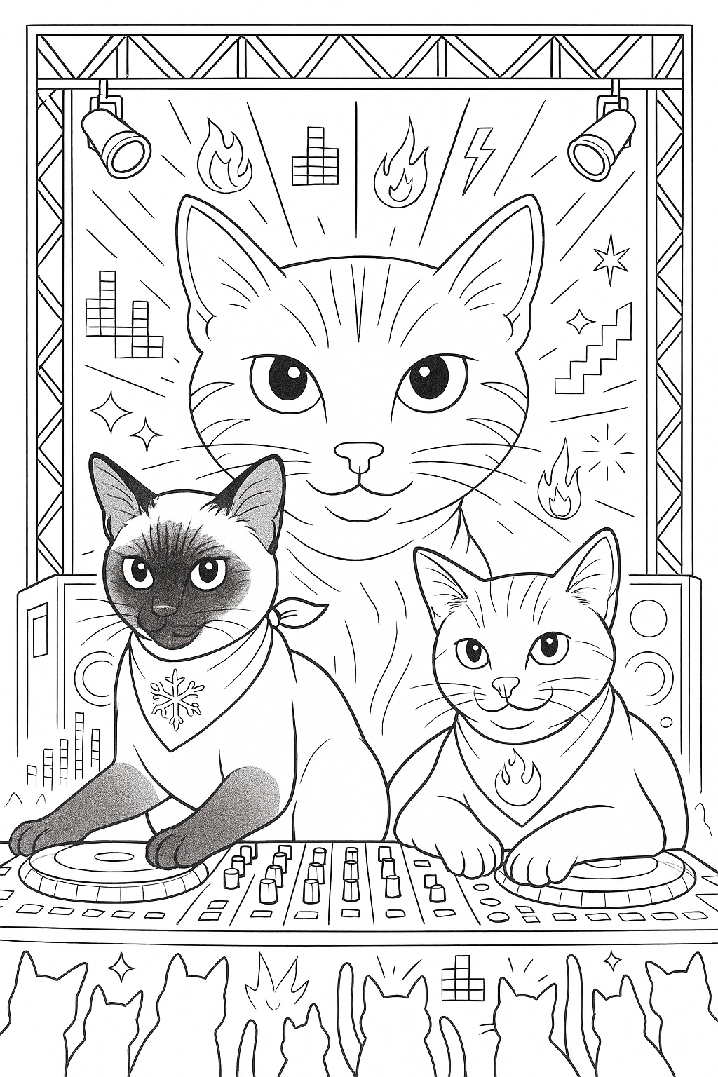 Step into the world of DJ ORANGES... a vibrant crew of memorable musicians who light up the stage with beats, lasers, and pure energy. Whether you're coloring your favorite DJ or designing a brand-new stage setup, every page invites you to explore rhythm, personality, and bold visual storytelling.
